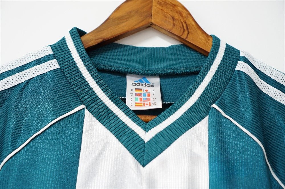 Das Adidas Deutschland Auswärtstrikot für 1998 ist aus recyceltem Polyester gefertigt, das Schweiß vom Körper ableitet und dich trocken und bequem hält.