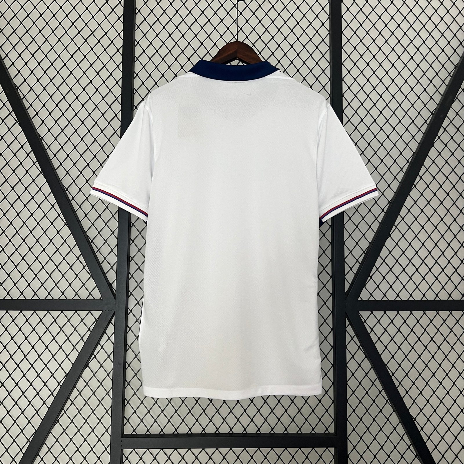 • Ärmel: Kurze weiße Ärmel mit subtilen blauen und roten Streifen – schaffen eine kraftvolle, aber elegante Balance.
